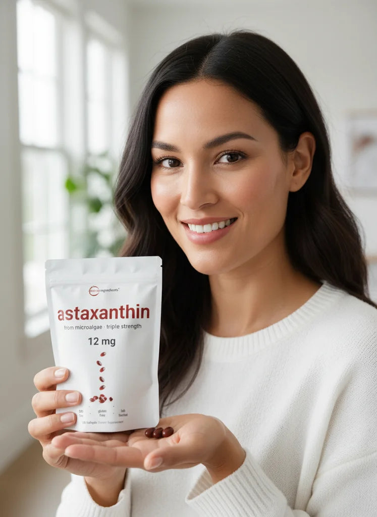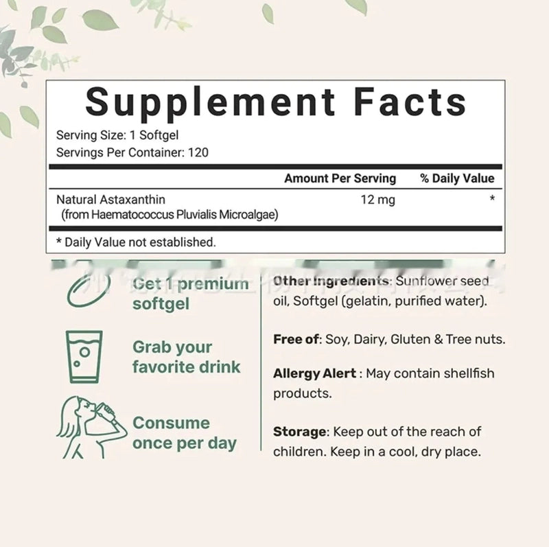 Tired of dull skin? Our triple-strength Astaxanthin, sourced from microalgae, is your secret weapon for a natural glow and daily defense. Feel the difference.